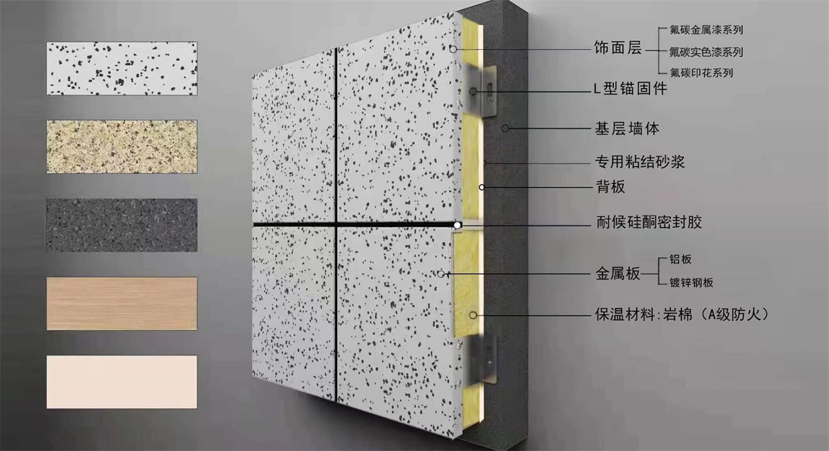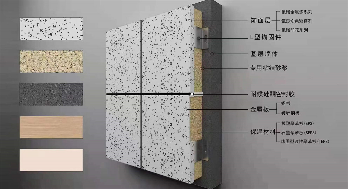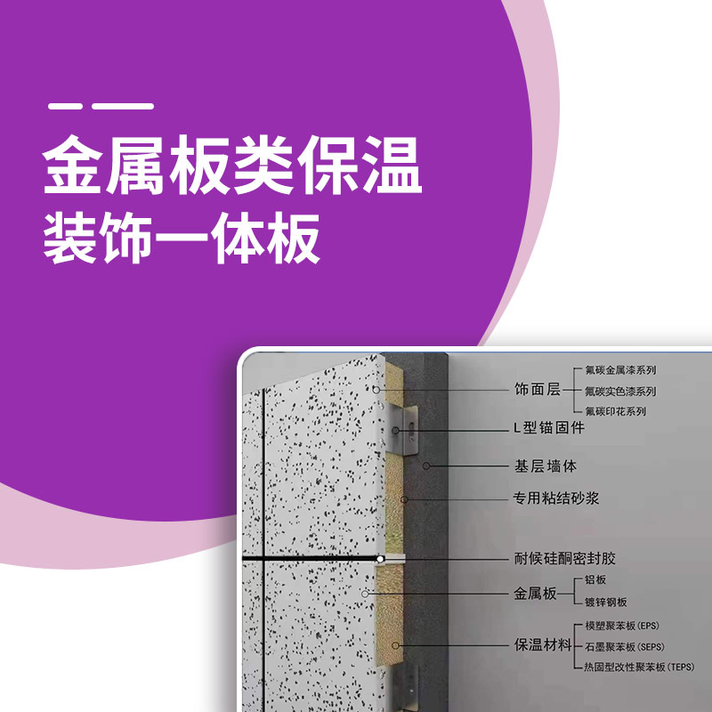 金屬板類(lèi)保溫裝飾一體板是由鋁板或鍍鋅鋼板作為載體層,與保溫材料復(fù)合而成的集節(jié)能、裝飾為一體的裝飾板。